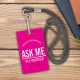 Pink Ask me I'm a volunteer id badge