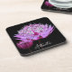 Set of 6, hard plastic beverage coasters with cork backing that feature the photo image of a pink Astrantia flower set against a contrasting, black background. Also known as Masterwort and Hattie's Pincushion. A stunning, floral design!