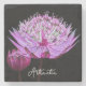 Protect your table top from water marks and stains with this decorative, stone beverage coaster with cork backing that features the photo image of a pink Astrantia flower set against a contrasting, black background. A stunning, floral design! Select your coaster stone style.