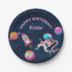 Pink Astronaut Outer Space Rocket Ship Birthday Paper Plate