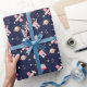 This space wrapping paper features a navy background and space illustrations. The illustrations are planets, stars and a rocket ship. It is pink and girly, making it perfect to use as birthday wrapping paper or Christmas wrapping paper.