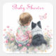 Pink Baby and Puppy Baby Shower Square Sticker
