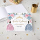 Cherish your special day for the years to come with a customised guest book. Featuring two quince girls in a baby blue gown and in a pink gown, pretty pastel baby blue and pale pink flowers and blue and pink butterflies. Personalise it with your details easily and quickly, simply press the customise it button to further re-arrange and format the style and placement of the text. (c) The Happy Cat Studio