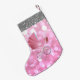 Beautiful Christmas Stocking for a Baby Girl's First Christmas, Featuring Pink Baby Carriage Bokeh Silver Faux Glitter Design - Personalise with Baby's Name!