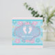 Adorable pink baby feet with pink and teal blue flowers and bows baby girl shower invitation.