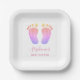 These cute Baby Shower Paper Plates are decorated with pink typography and watercolor rainbow-coloured baby feet.