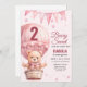 Pink Baby Girl Air Ballon Teddy Bear Birthday Invitation