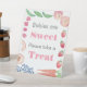 Cute And Colourful "Babies are sweet; Please take a treat" favour table sign for a Farmer's Market / Locally Grown theme baby shower to welcome a little girl. The text is in pink. How to make advanced customisations: From a desktop computer, underneath where you enter your text in the customisation boxes, "click to customise further". This will take you into the design tool. Once you are happy with your edits, click "Done" to return to the original page, and add quantity to your cart etc.