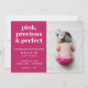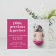 There's no moment quite as heartwarming as the arrival of a beautiful baby girl. Our "Pink, Precious & Perfect" baby girl photo birth announcement captures the essence of this joyous occasion with style and sweetness. Share the delightful news of your little princess's arrival with family and friends in a way that's as charming as she is.