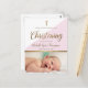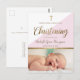 Personalise with your baby girl's photo and full name. This elegant Christening thank you card postcard makes it easier to send out your gratitude. The printed gold "Christening" script and cross adds a touch of elegance to this modern design. The pink can be changed using the customise further tool if you need, contact us at info@lddesignloft.com should you need assistance with this design.
