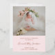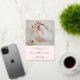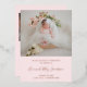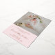 Photo birth announcement card featuring a simple design with one square picture on the front with baby's name in an elegant script and her birth stats in real rose gold foil over a pink background. The back side has a photo collage with two horizontal pictures and your custom message over a pink background. This elegant birth announcement card is a great way to announce the arrival your newborn baby girl.