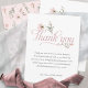 The Elegant Pink Wildflower Baby Shower Thank You Card is a beautifully designed A2-folded card that comes with envelopes, perfect for expressing gratitude to your guests. Inspired by the whimsical charm of an Alice in Wonderland tea party, this card features the words 'Thank You' in an elegant classic calligraphy, accented with a lovely watercolor pink wildflower adorning the top of the lettering. Its design evokes the magical and enchanting atmosphere of a bridal shower, making it an unforgettable way to convey your appreciation. Available in a palette of colours, each card offers a personal touch to your baby shower thank yous, ensuring your gratitude is felt in the most stylish and heartfelt way.