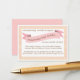 A charming poem requests that guests bring a book for the baby-to-be to start the new mum off with a library of beloved children's books. Just insert this sweet card inside the baby shower envelope, the yellow and pink geometric design is perfect to coordinate with just about any baby girl shower invitation too.