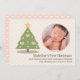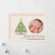 Add your daughter's name to these cute and pretty baby's first Christmas photo cards with a Christmas tree with pink, heart shaped ornaments and a golden star on top of a cream hued polka dot background. The back is pink with a repeating heart patterned design. This card can be personalised with your baby's name and your family's special message. Artwork © Chrissy H. Studios, LLC. All rights reserved.