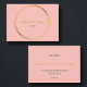 A chic blush pink business card features interlaced gold effect rings framing the company name and city, with clean, modern typography and spacious layout for easy readability and professional promotion. The circular mark doubles as a stylish logo motif, creating an eye catching pink and gold identity that works across boutique, beauty, and creative brands. The gold lis a printed effect.