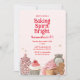 Celebrate the sweetest season with this Pink “Baking Spirit Bright” Christmas Cookie Invitation, featuring charming watercolor illustrations of cupcakes, cookie jars, and gingerbread treats.