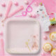 Add a touch of ballet magic to your baby shower with this soft blush-pink paper plates featuring a delicate corner design of watercolor ballet slippers, a gold magic wand, and shimmering confetti. Perfect for ballerina, tutu-cute, dance, or pink & gold themed celebration.