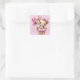 Pink Ballerina Bear Glitter Balloon Birthday Party Square Sticker