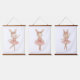 Cute adorable and whimsical pink ballerina bunny girls nursery, toddler bedroom or playroom wall art. Set of 1-2 or all three matching wall decor. 26x36 inches.