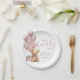 The design is simple and minimal with a sweet, elegant feel that looks lovely on dessert tables, place settings, or treat stations. Fonts, wording, and background colors can be customized to match your baby shower theme, making these plates a charming choice for celebrating a baby girl.