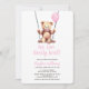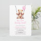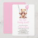 Pink Balloon Bear Girl Baby Shower Invitation