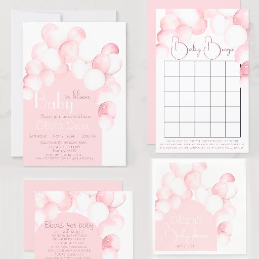 Pink balloons arch baby shower invitation