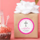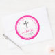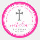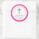 Pink Baptism Christening Naming Cross Classic Round Sticker