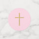The smallest confetti have just a gold cross on marble on one side and flowers on the other side.