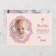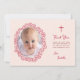 Pink Baptism Girl Photo & Red Floral Wreath Script Thank You Card
