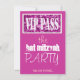 Pink sparkly VIP Pass Bat Mitzvah Bar Mitzvah party invitation a modern and stylish design at zazzle.com/DatesDuJour.