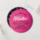 This classic "It's game time!" girl's 1st birthday circle photo invitation features a pink basketball with bold lettering. The reverse side features a black background with pink star patterns. Personalize it for your needs. You can find matching products at my store.