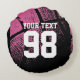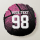 Girly neon pink basketball throw pillow with sports jersey number. Cute personalised home decor for kids bedroom, mancave, club, sports bar etc. Add your high school team name, funny quote, name, slogan etc. Suitable for sporty men women and teen children (boys and girls). Make one for dad, mum, sister, brother, boyfriend, girlfriend, teammates, coach, friend, teenager etc.