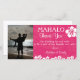 Upload your wedding or honeymoon photos to create a personal thank you card for guests. This design has a pink azalea watermark tropical floral background. A white hibiscus and small beach flowers embellish the card. To resize or reposition your photo, click on the Customise It button. Please message me if you need help with formatting.