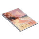 A lovely vintage style digital painting of a beach with pink clouds and brown tone palms a blank notebook fitting for a memorial service guest note book.