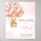 Pink Bear Hot Air Balloon Baby Shower Welcome Poster