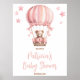 Pink Bear in Hot Air Balloon Baby Shower Welcome Poster