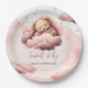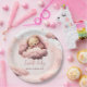 Pink bear on clouds baby birthday party plate