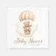 Pink Bearly Wait Girl Teddy Bear Baby Shower Napkins features an adorable watercolor illustration of a teddy bear in a hot air balloon against soft clouds.
