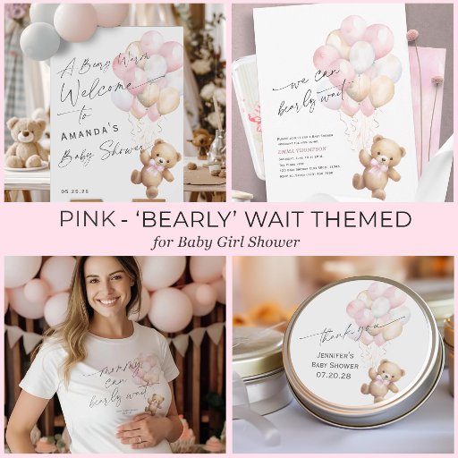 Cute We Can Bearly Wait, Pink Teddy Bear ShowerDesigned by Pixelia Designs