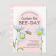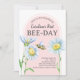 Bee birthday invitation with pink background and watercolor daisy flowers! So sweet for a baby girl's first birthday party. © 2025 Tea Olive Co.