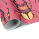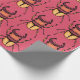 Colourful beetle wrapping paper with an artistic vector illustration depicting a stag beetle with big antlers patterned with decorative elements in fun yellow and orange colours over sweet pink background.