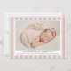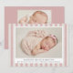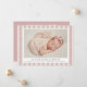 Celebrate the arrival of your little bundle of joy with our mauve pink and beige striped birth announcement photo cards. The farmhouse style birth announcements display your baby's photo on the front with a background of mauve pink and beige linen stripes. Personalise the front of the announcements by adding the baby's name and birth information (birth date, length, weight, etc.). The simple girl birth announcement reverses to feature an additional photo with space for a message in white text with a mauve pink background.