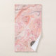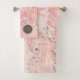 This elegant bath towel set has a soft pink and greige marbled watercolor background and is customised with your monogram initial.