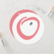 Cute baby shower invitation. Front has a pregnant, pink belly with belly button. Done in colours of pink, white and black. Simple and sweet