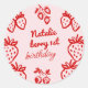 Pink Berry 1st Hand Drawn Strawberry Girl Birthday Classic Round Sticker