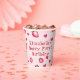 This cute "Berry First" red hearts and strawberries hand painted watercolor illustration themed paper cup with personalizable text is perfect for a 1st bday party. It features red hearts and hand-drawn strawberry motifs on a pink background and text that you can customise with your own details. The template is customisable in the listing editor.