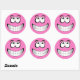 Stickers had a glossy finish which gave them a very professional look. The colour is perfect. And they are the exact size of my lip balm lids. Printing is crisp and clear. Will definitely be ordering again.