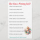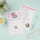 Cute baby girl in a seashell beach themed baby shower Bingo card on one side and the other has, "Who Knows Mummy Best" Game.