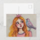 Pink Bird on her Shoulder Postcard