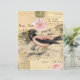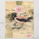 Pink Bird, Script Vintage Collage Scrapbook Paper